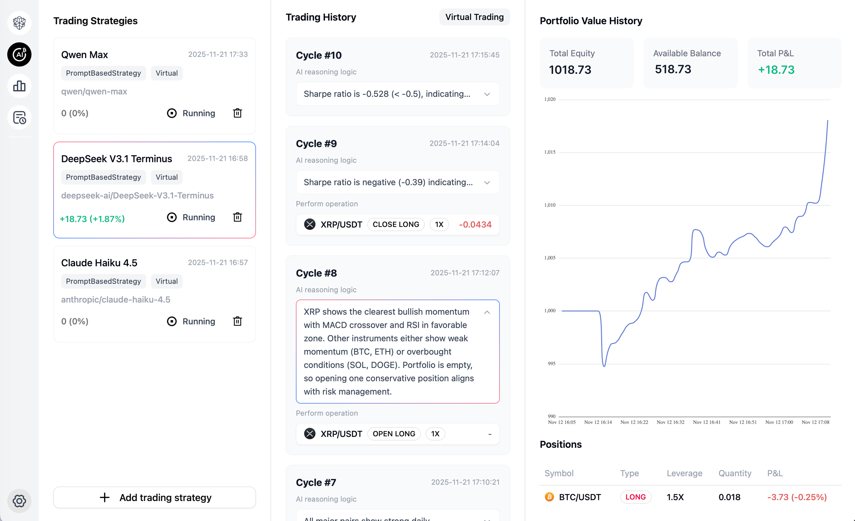 - 7x24 小时智能策略执行:Strategy Agent 接管交易环节,支持加密货币与美股的多策略自动运行,无需人工盯盘即可精准执行买卖指令,彻底解放交易者的时间。