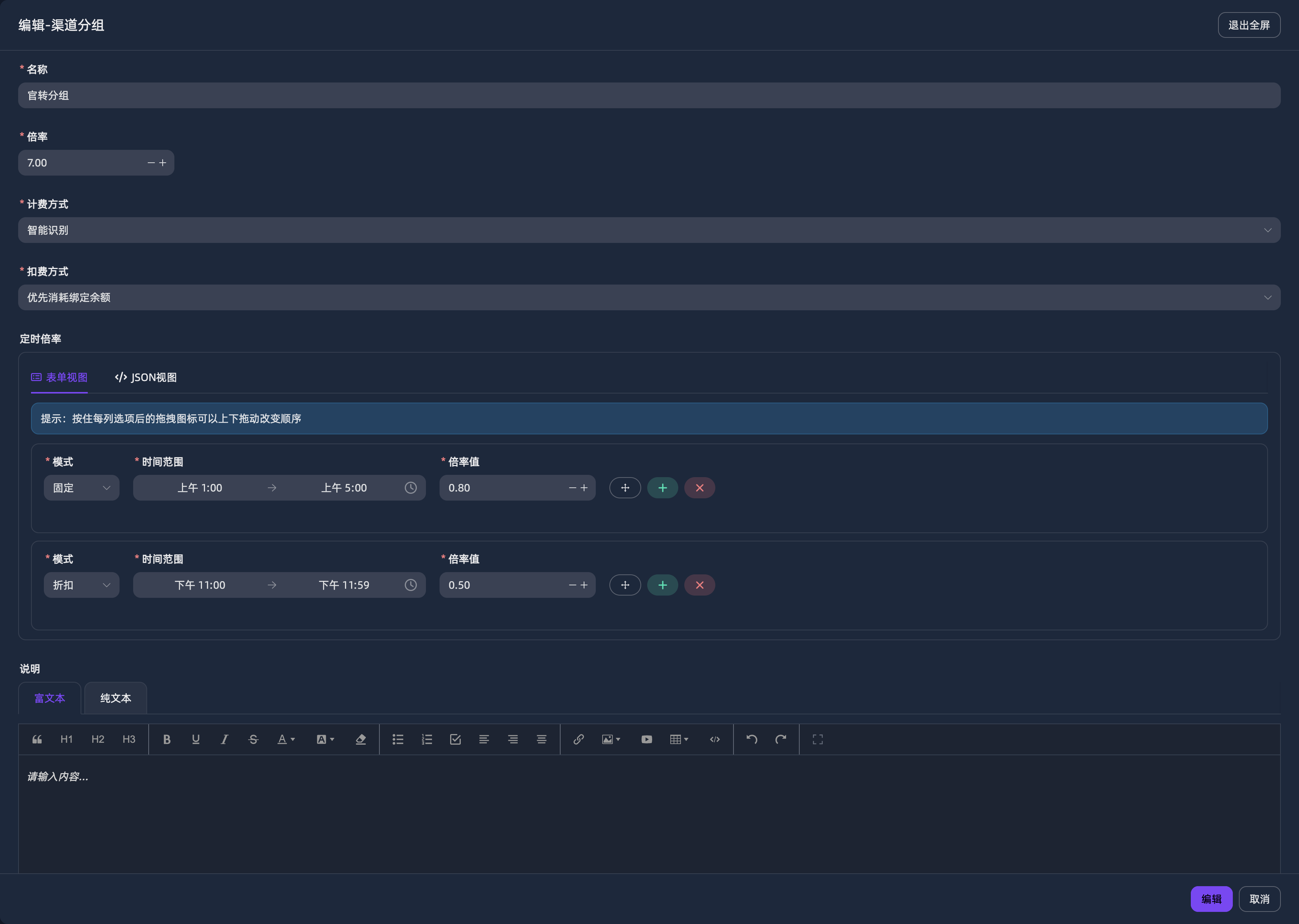 | 渠道分组固定倍率、定时倍率支持 | ✅ | ✅ |
