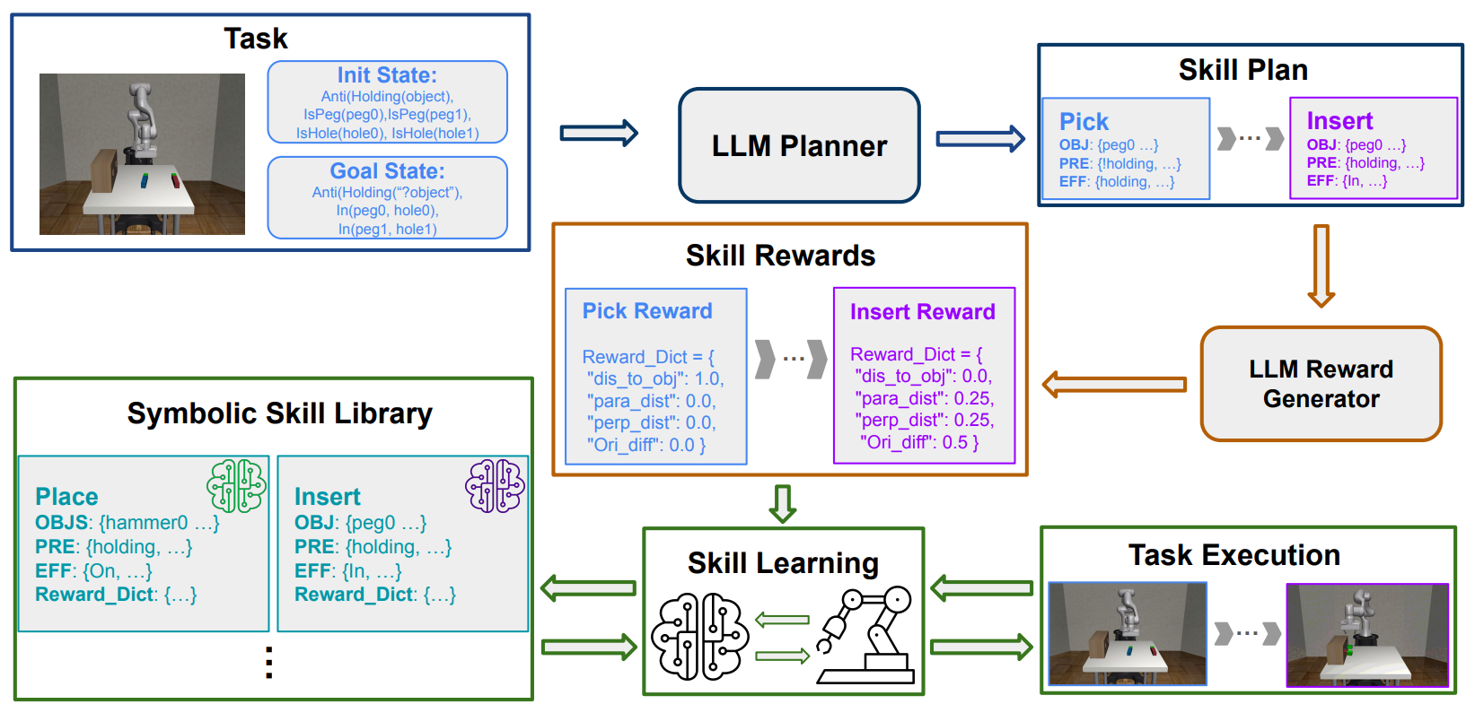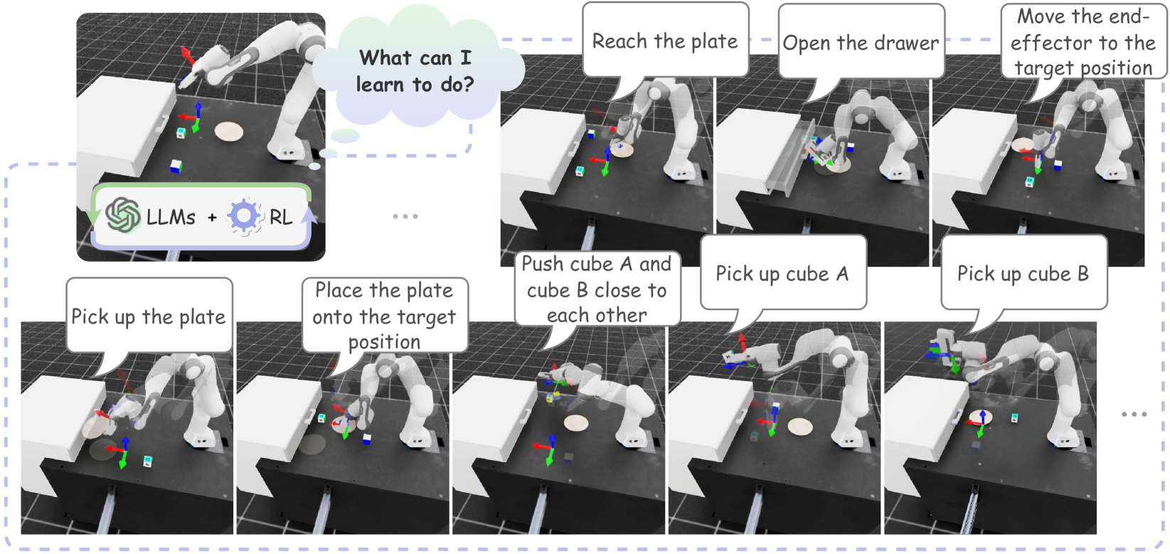 - 目前需要人工预先提供可用技能。未来,框架应具备自主学习新技能的能力。