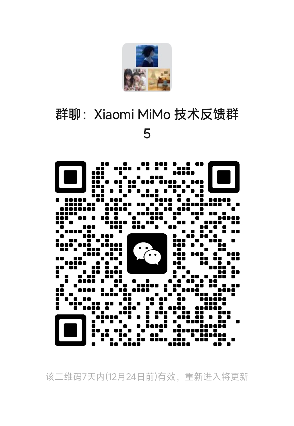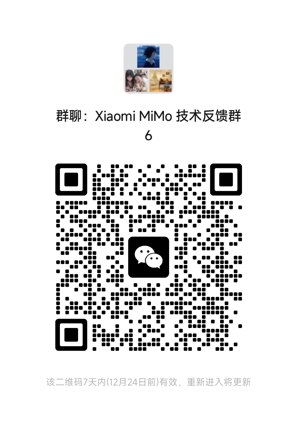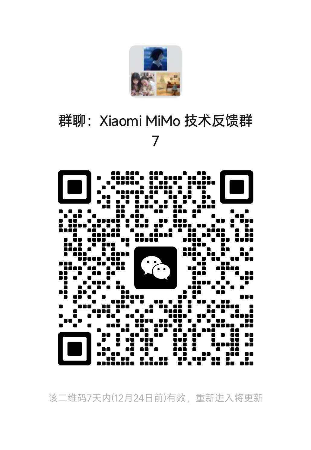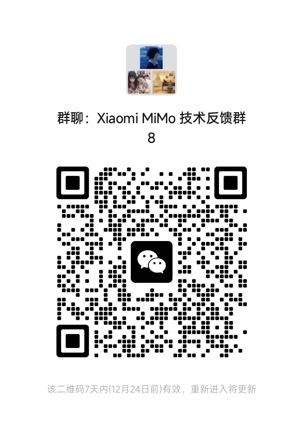 如有任何问题,请通过mimo@xiaomi.com联系我们,加入下方的微信群组,或直接提交问题。