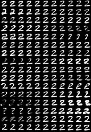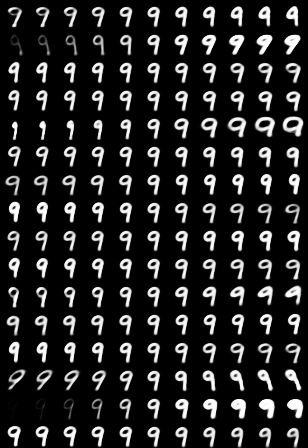 我们可以看到,每一维都捕捉到了数字的一些特征。不同数字胶囊的同一维可能代表不同的特征。这是因为不同数字是由不同的特征向量(数字胶囊)重构出来的,而这些向量在重构过程中是相互独立的。