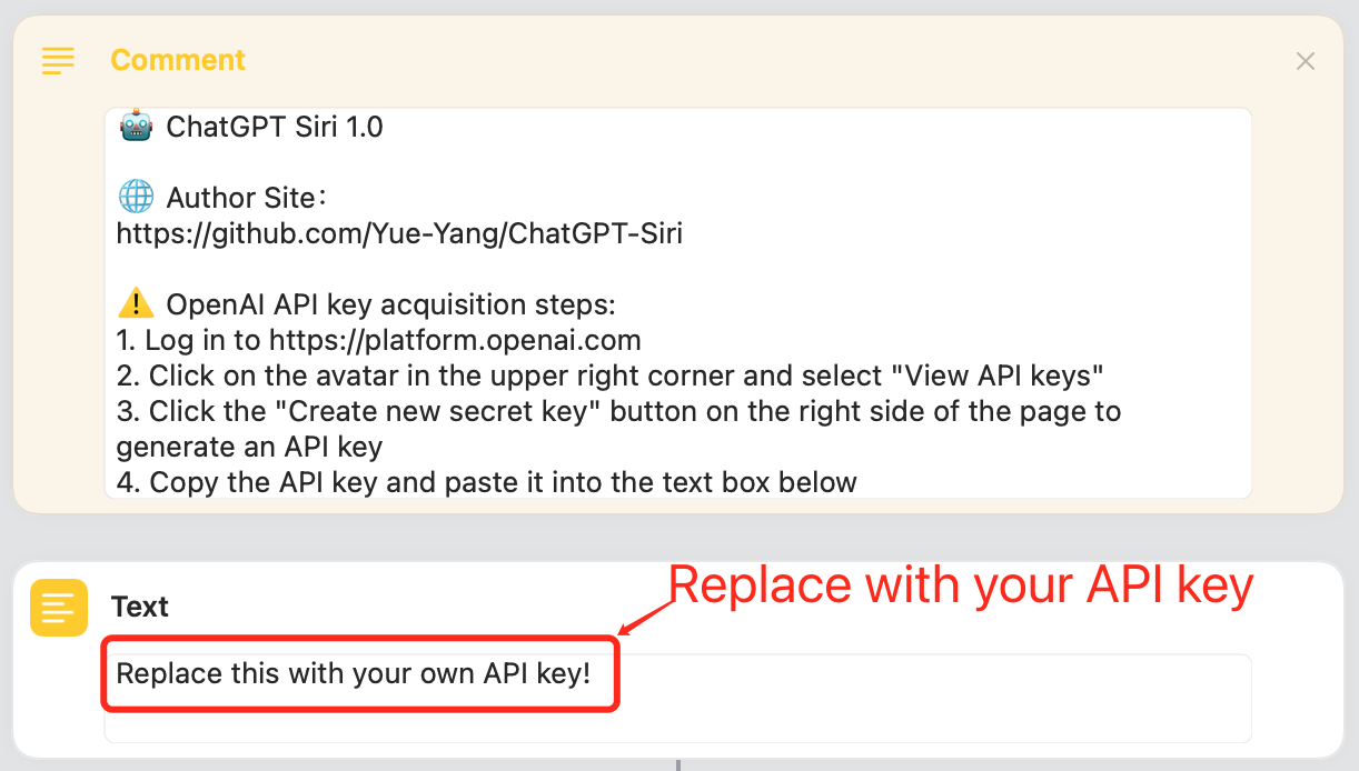 要使用该快捷指令调用ChatGPT API,需要一个OpenAI API密钥。您可以前往OpenAI官网免费获取,具体步骤如下: