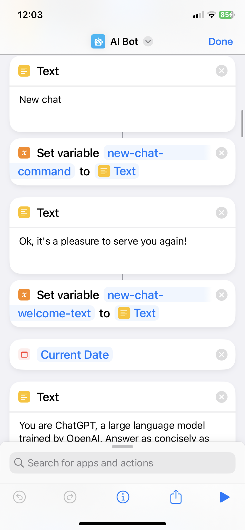 您还可以自定义系统消息,这有助于设定助手的行为模式。在此“快捷指令”中使用的默认系统消息是ChatGPT的默认设置之一: