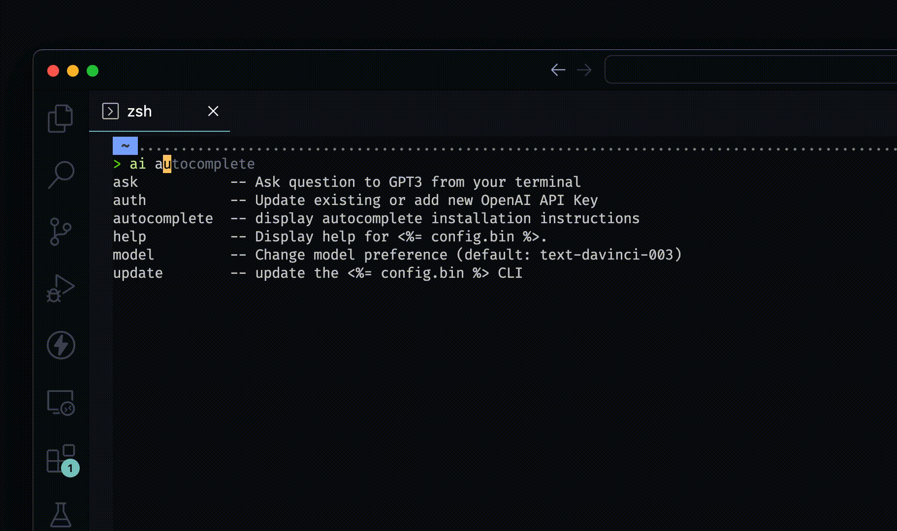 通过运行 ai autocomplete 并按照指示操作,即可启用自动补全功能。非常简单。