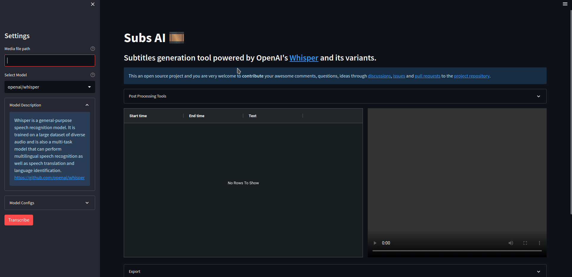 该工具的核心亮点在于其广泛的模型兼容性,不仅支持原版 Whisper,还集成了 faster-whisper、whisperX 等优化版本,能在保证高准确率的同时显著提升推理速度并降低资源消耗。此外,Subs AI 强调隐私与离线可用,内置了基于 NLLB 和 M2M100 等模型的翻译功能,支持多语言字幕生成与修正。凭借其轻量级设计和跨平台特性,Subs AI 让高质量的字幕制作变得简单高效。