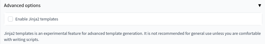 要启用,请打开“高级”折叠面板并选择“启用Jinja2模板”。