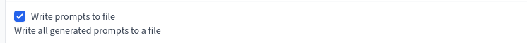 勾选“将提示保存到文件”复选框,即可创建一个包含所有生成提示的文件。生成的文件是以提示内容为基础生成的URL友好字符串,可与生成的图片存放在同一目录下,例如:outputs/txt2img-images。