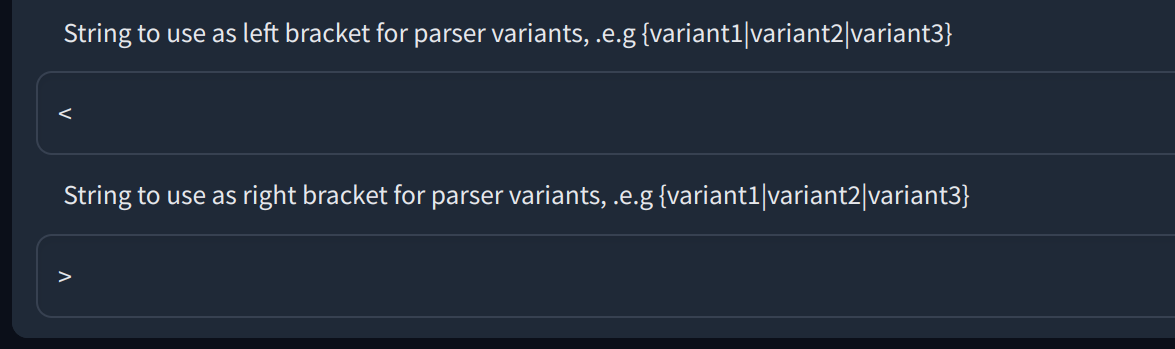 如果与其他扩展发生语法冲突,Dynamic Prompts 允许您更改变体开始和结束的符号。默认情况下,它们分别设置为 { 和 },例如 {red|green|blue}。在设置选项卡中,您可以将这两个符号更改为任何字符串,比如 <red|green|blue> 或者 ::red|green|blue::。