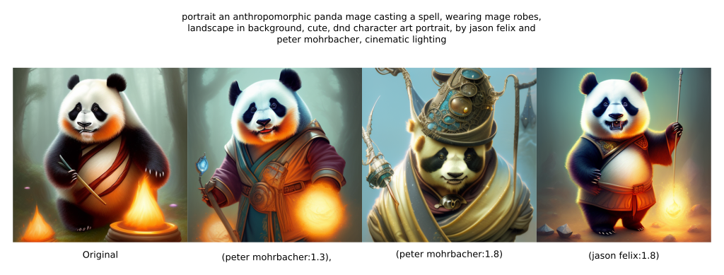 此选项会随机选择您提示中的一个关键词,并为其添加不同程度的强调。以下是其对提示的影响示例: