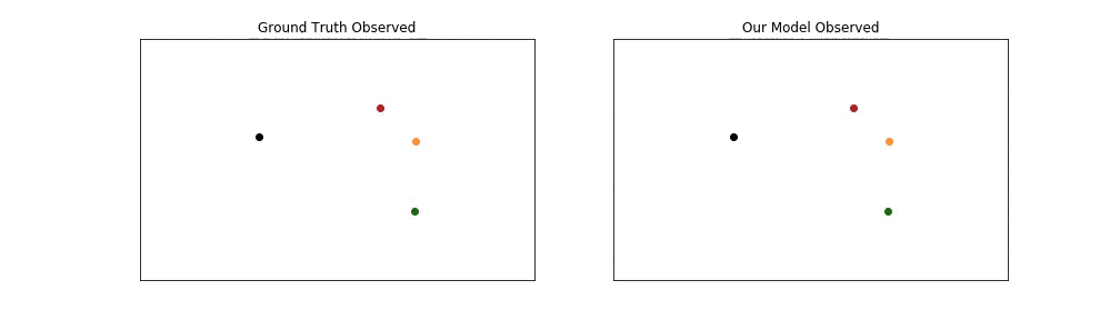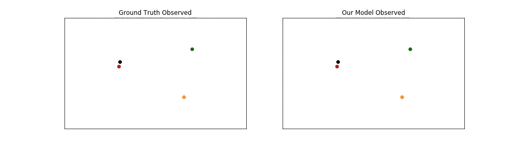 下面展示了我们的模型在复杂场景中生成的社会可接受预测示例。每个人用不同的颜色表示。观测到的轨迹用点表示,预测的轨迹用星号表示。
