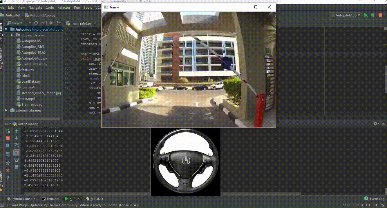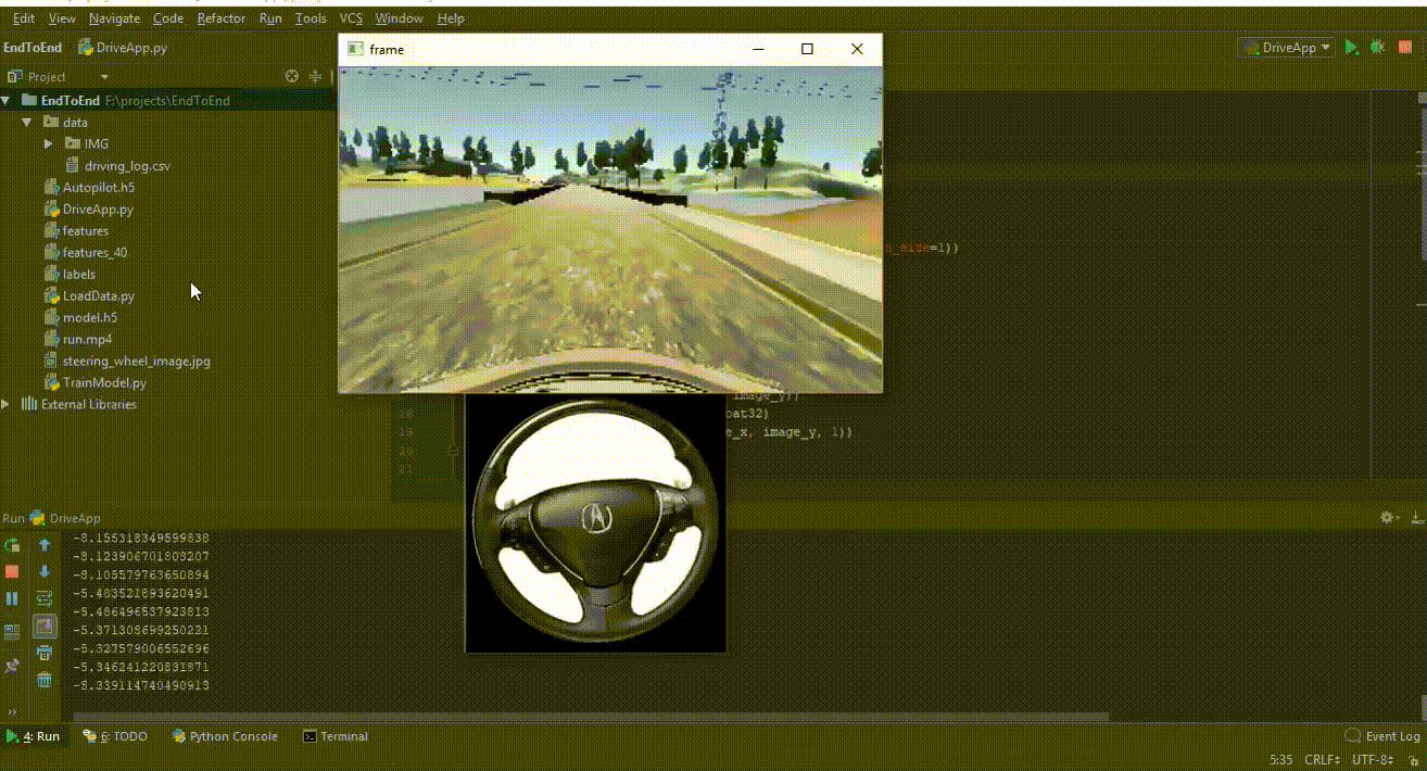 Trainer.py与Main Application.py无缝衔接,一键启动从数据读取到转向角输出的完整训练流程。 - 即时仿真反馈:训练完成的模型可立即接入模拟器,实时可视化车辆转向行为,快速迭代优化过弯平滑度与车道保持能力。