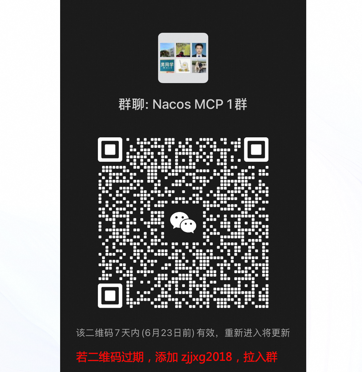 如果您需要 Nacos 企业级服务支持,或购买云产品服务,可以通过扫描以下钉钉群加入讨论。您也可以通过阿里云提供的微服务引擎(MSE)直接开通并使用。 https://cn.aliyun.com/product/aliware/mse?spm=nacos-website.topbar.0.0.0