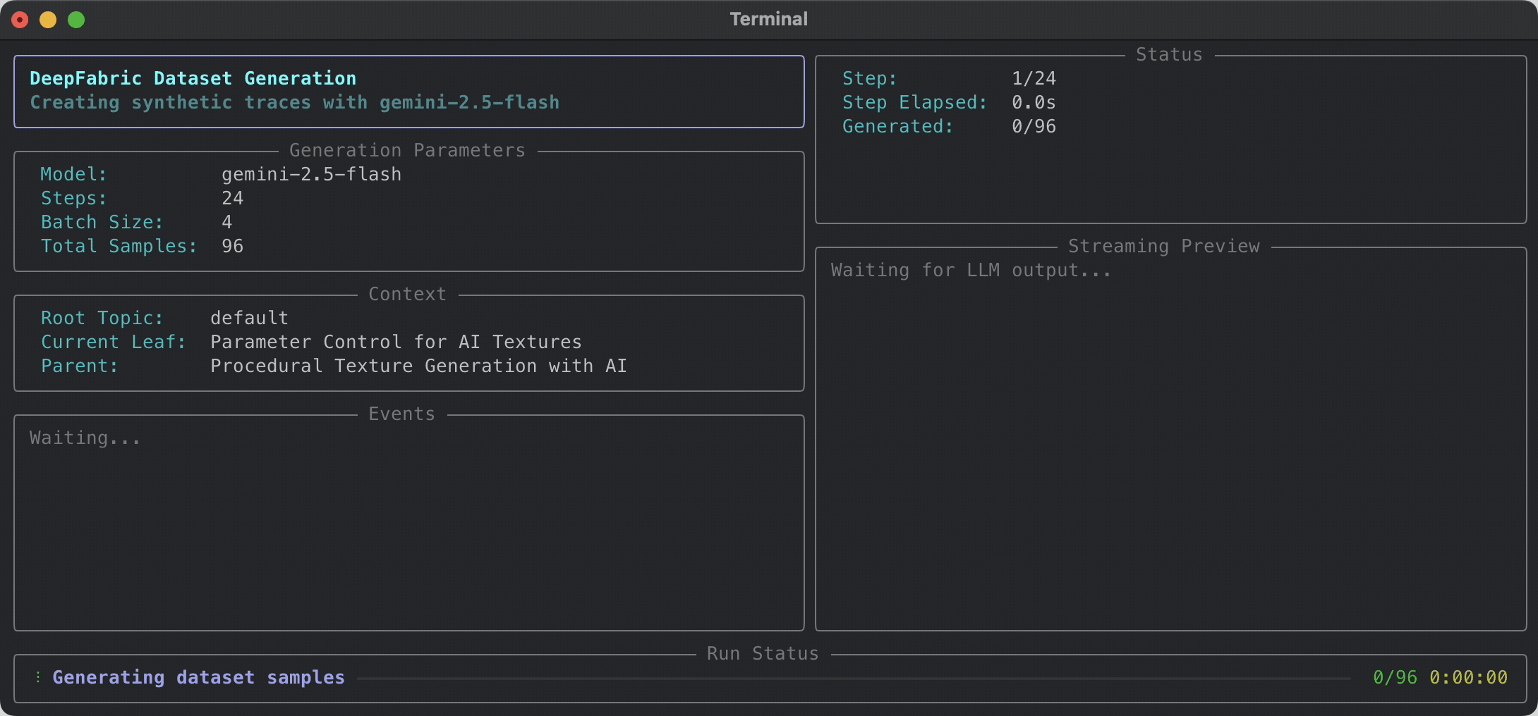 我们收集匿名使用数据以改进 DeepFabric。不会收集任何个人数据、提示或 API 密钥。