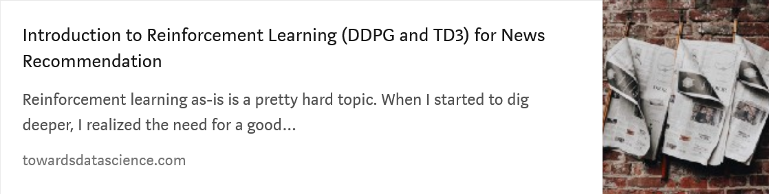 - 如果您熟悉推荐系统但对强化学习了解不多,以下内容几乎涵盖了入门所需的一切: