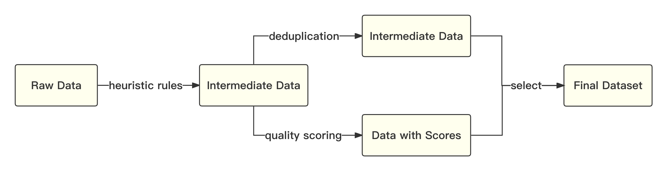 - 原始数据包括开源的中英文数据、自行抓取的中文互联网数据,以及部分高质量知识性数据。