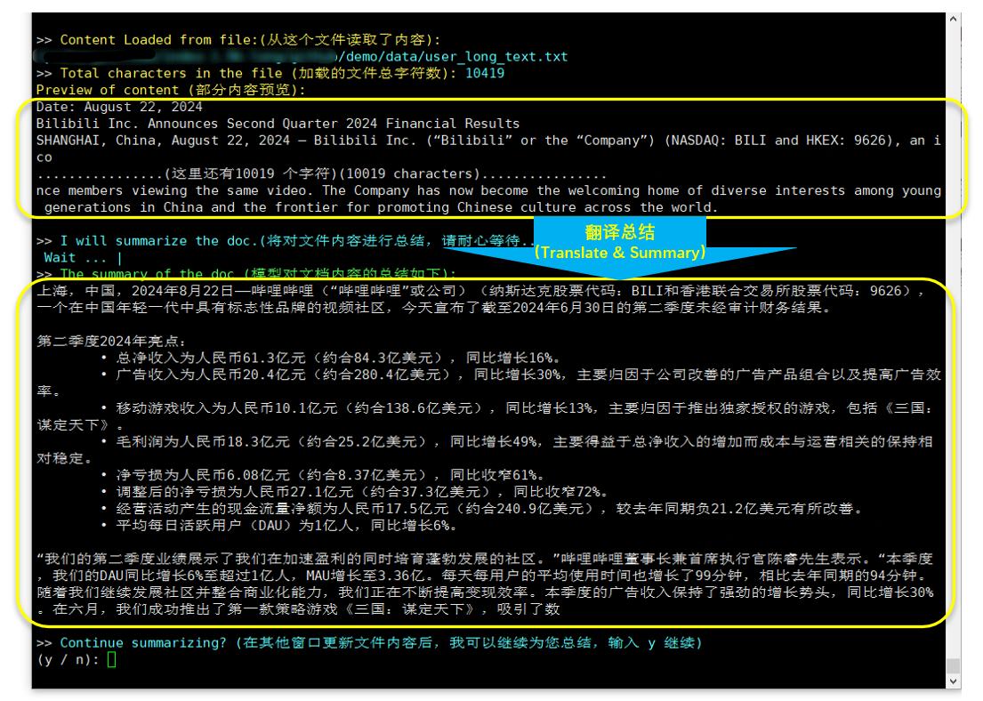 - 运行与互动示例(将 2024 年 8 月 22 日发布的哔哩哔哩财报翻译成英文并摘要 --- 原始英文报告在此):