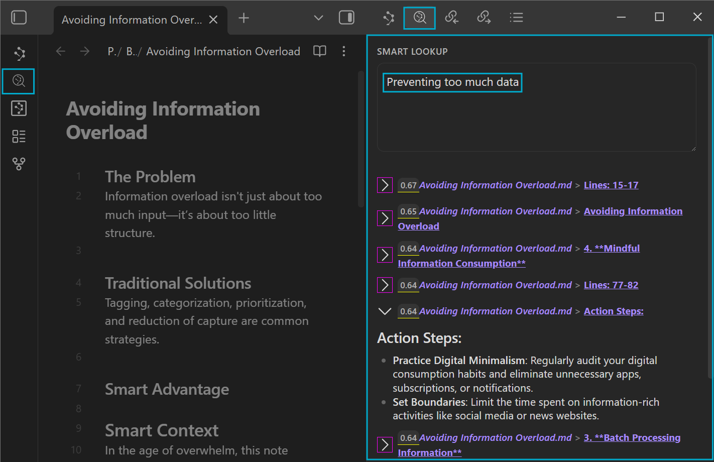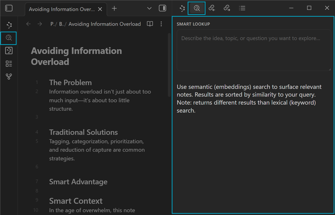 | Lookup 视图 | 随时对整个笔记库进行语义搜索。 |