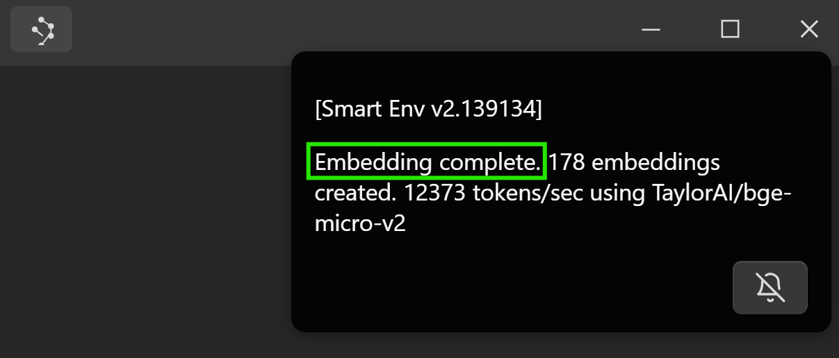 本地模型会立即开始创建嵌入向量。无需额外的应用程序、CLI 工具或 API 密钥。