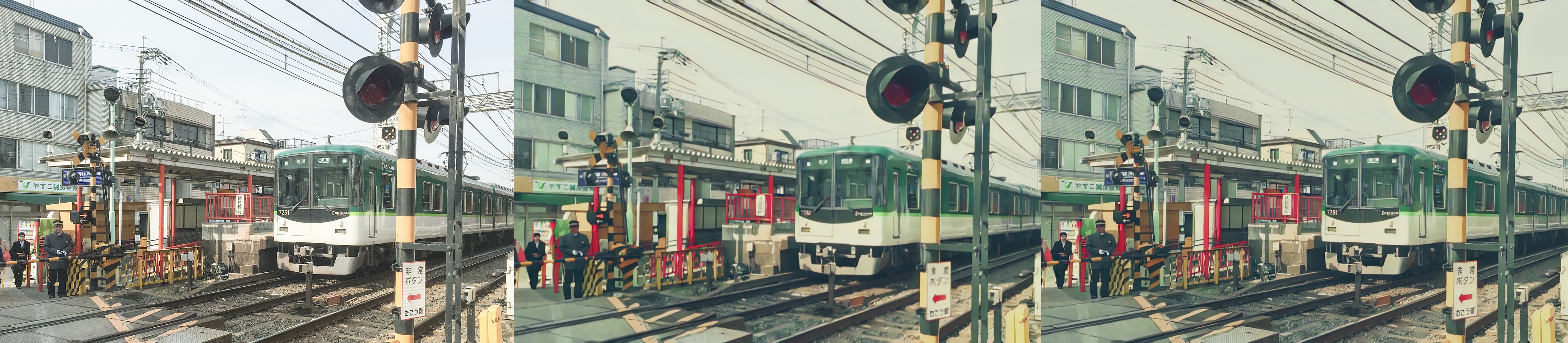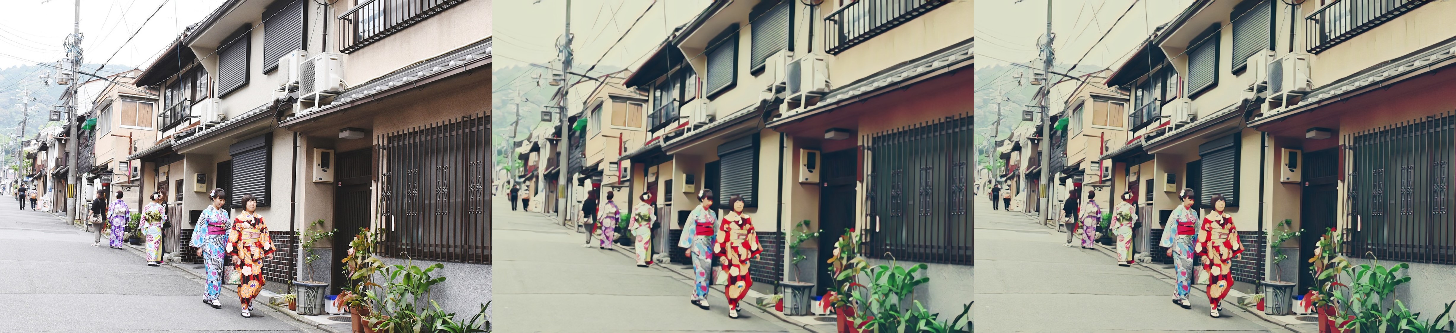 从转换后的 `Paprika` 风格模型得到的结果(从左到右:输入图像,原始 Tensorflow 结果,PyTorch 结果)
