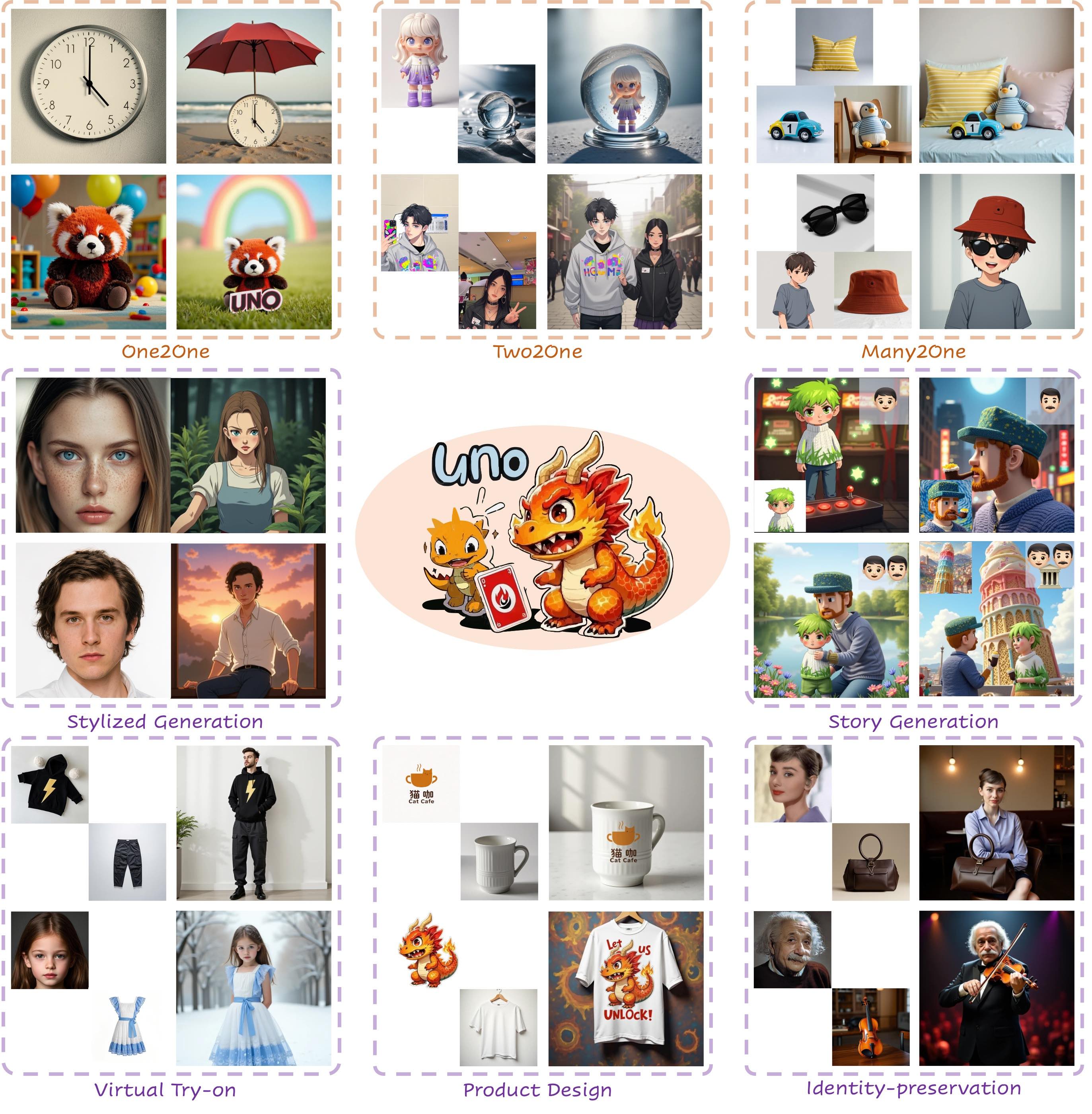 UNO 通过“少样本到强泛化”的技术突破,将定制化图像生成的门槛从“专业训练”降低为“即时推理”,极大提升了创意落地的效率。