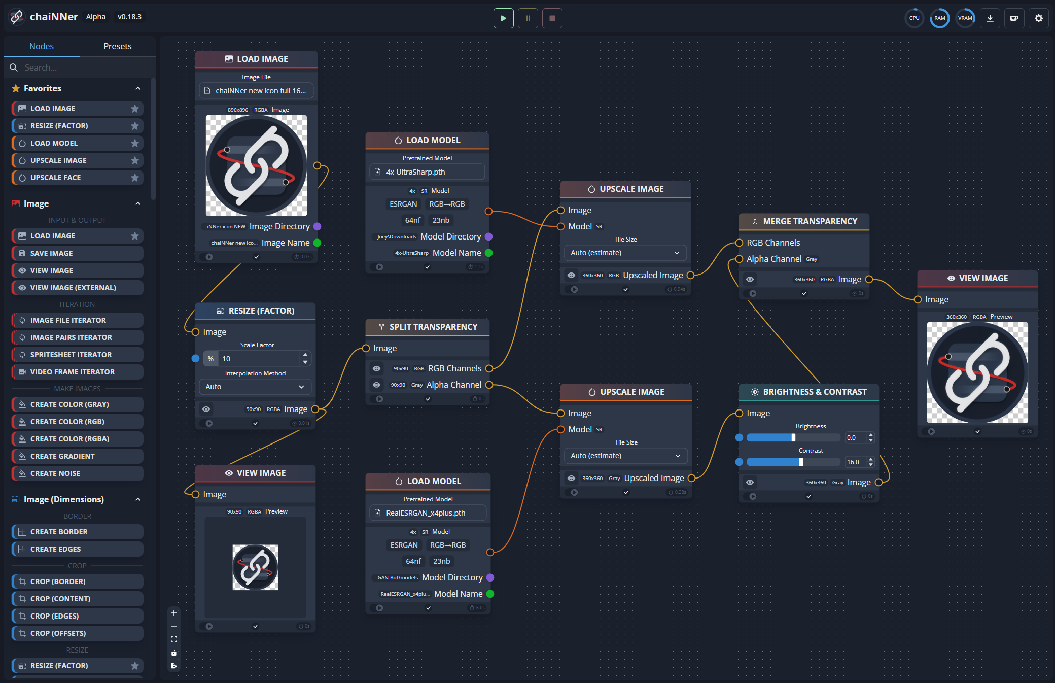 chaiNNer 让你对图像处理工作流拥有极高的自定义能力,这是很少有其他工具能做到的。你不仅可以完全掌控整个处理流程,只需通过连接几个节点就能完成极其复杂的任务。