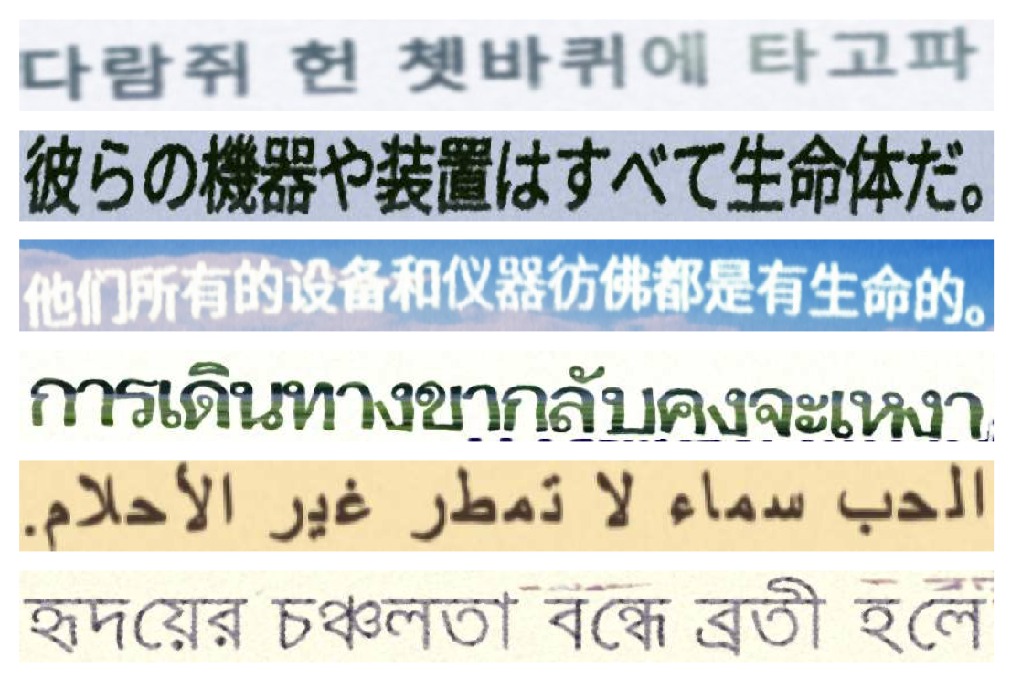 - 轻松覆盖多语种:只需加载对应语种的语料文本和字体文件,synthtiger 即可自动批量生成高质量的非拉丁语系训练样本,迅速补齐数据短板。