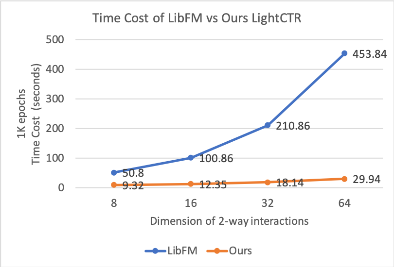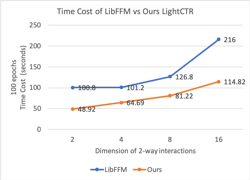 相比使用FM预训练特征低维映射后、再输入DNN中的两阶段训练,通过DNN在输入层按Field内部局部连接,在输入层直接端到端训练特征低维Embedding,可以更好的保证模型时效性;或采用将DNN嵌入FM模型中的LightCTR::NFM及其他相关变种,进行特征非线性高维组合,提升模型的表征能力,拥有更好的AUC表现。