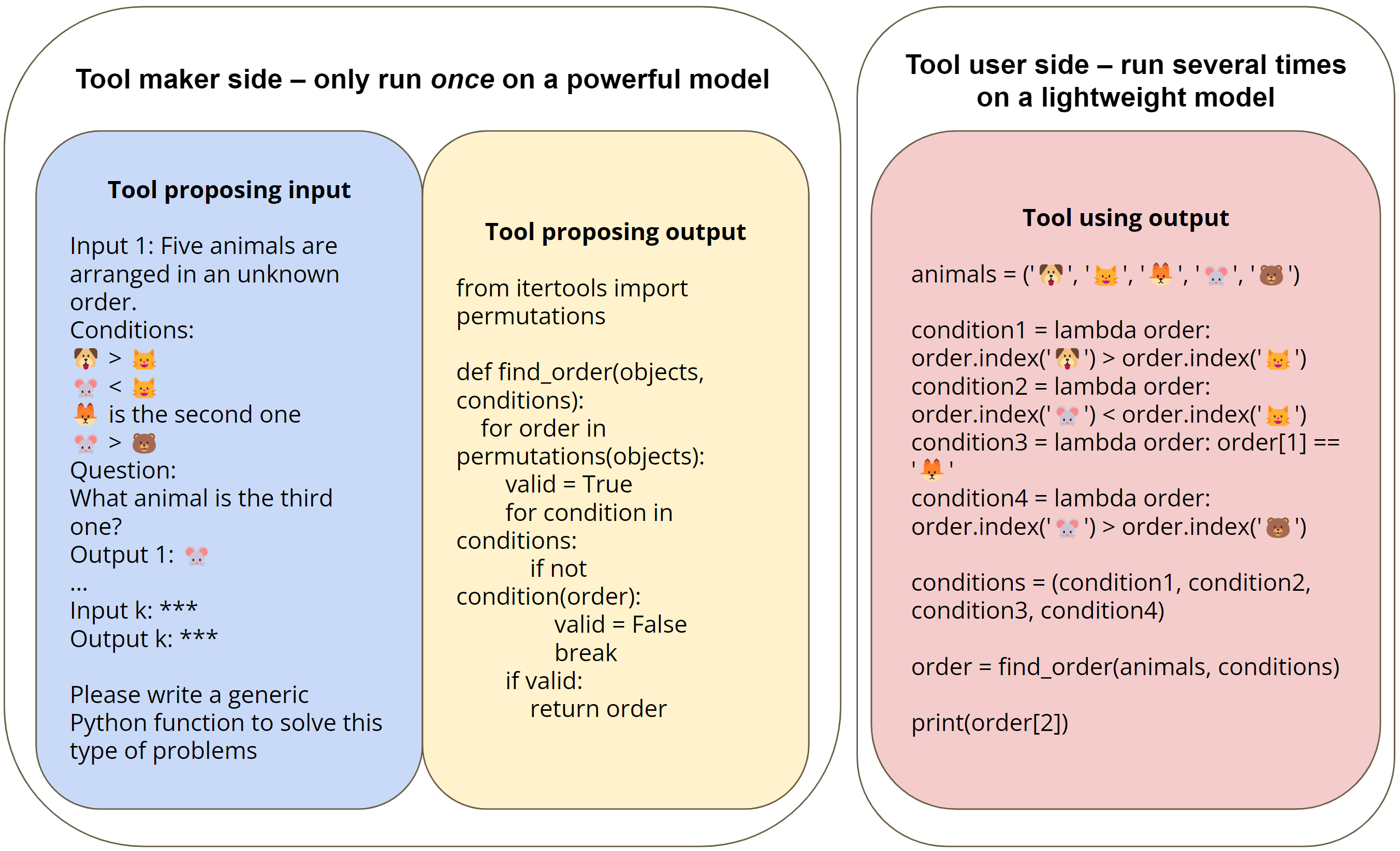 - 逻辑精准可靠:生成的工具是经过单元测试验证的可执行代码,强制模型通过枚举和逻辑运算得出结果,彻底消除了自由文本推理的不稳定性。