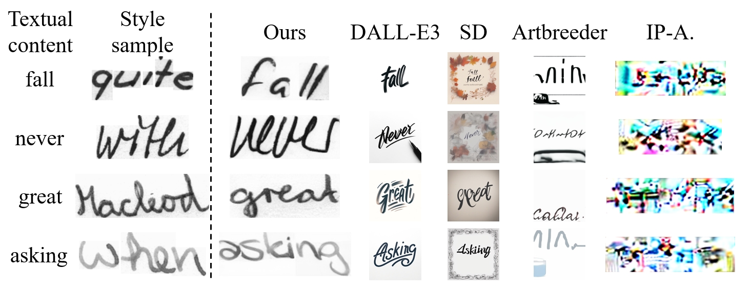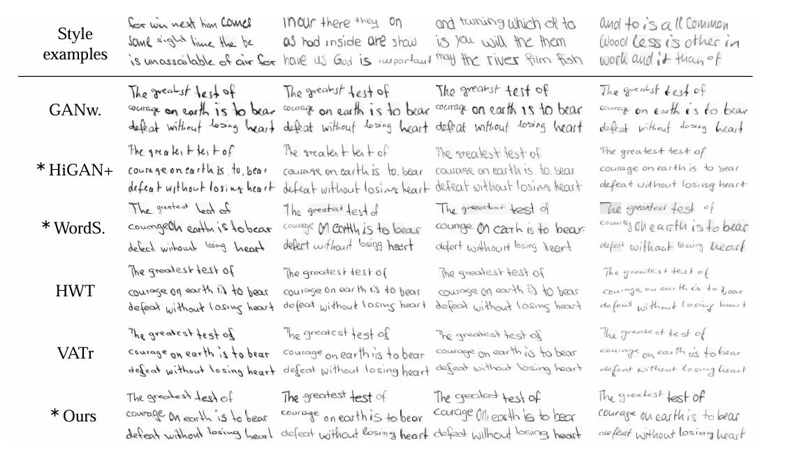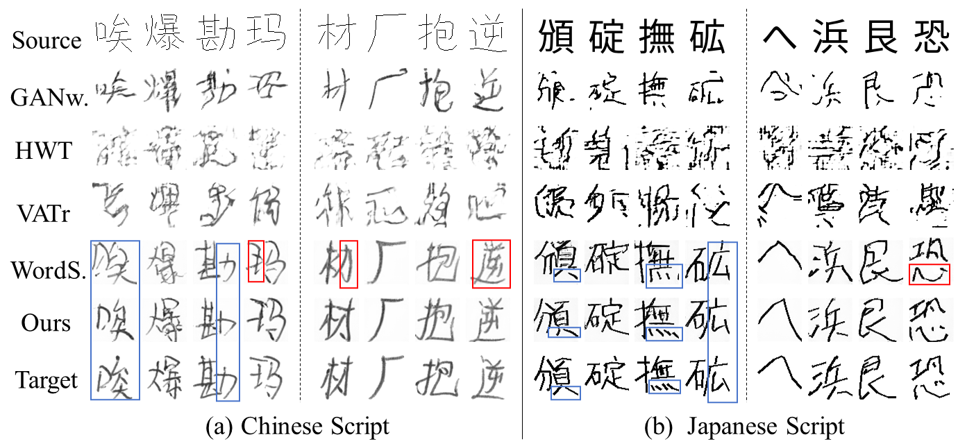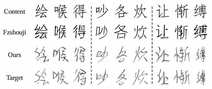 - 在英语、中文和日语手写数据集上的大量实验表明,我们的方法仅使用一个风格参考样本,其性能甚至超过了使用15倍以上参考样本的先前方法。