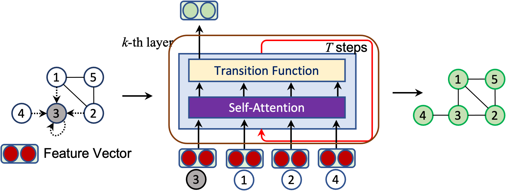 - 训练高效稳定:通过并行化的注意力计算替代了递归式的消息传递,在减少网络层数的同时加快了收敛速度,有效避免了深层训练的不稳定性。