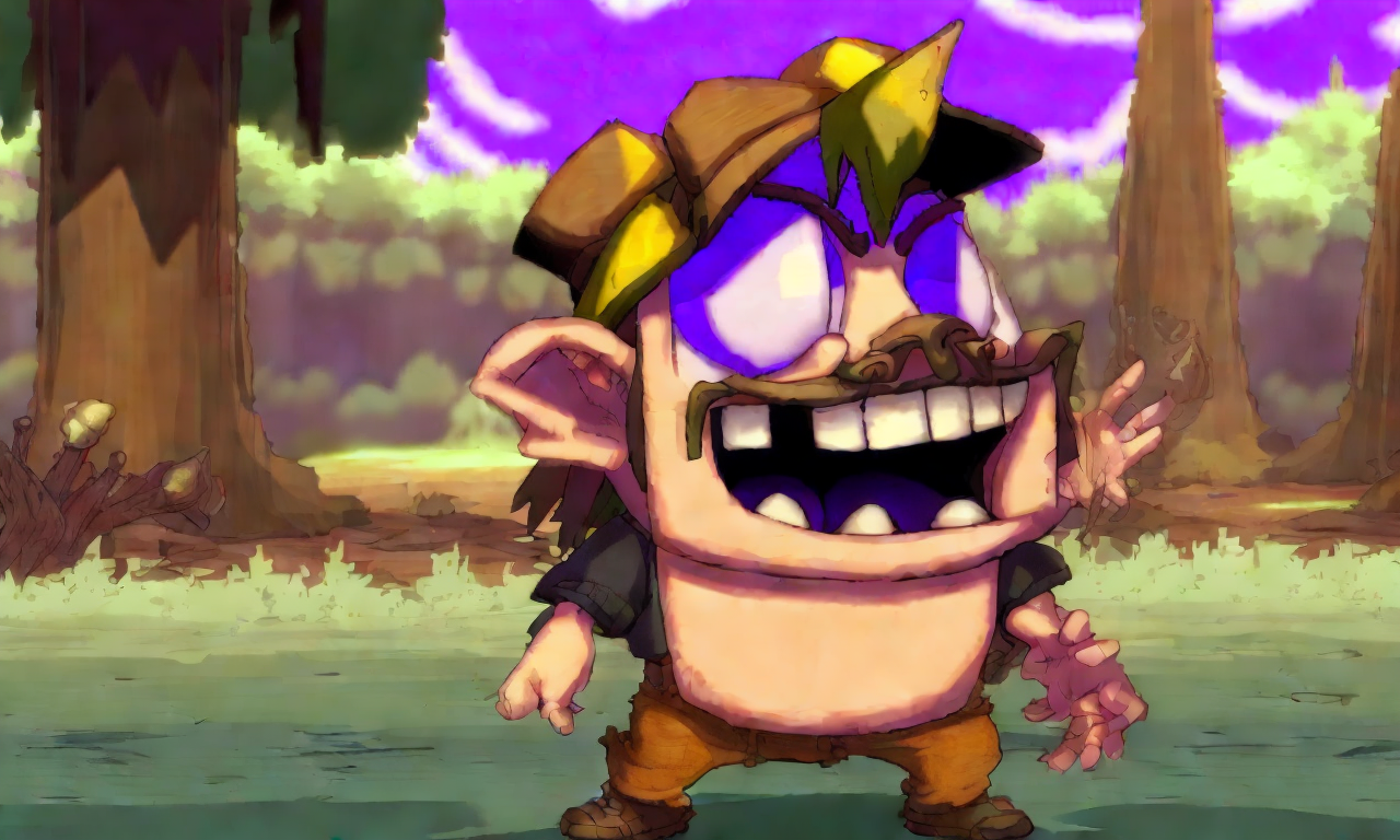 a moist sloppy pindlesackboy sloppy hamblin' bogomadong, Clem Fandango is pissed-off, Wario's Woods in background, making a noise like ga-woink-a