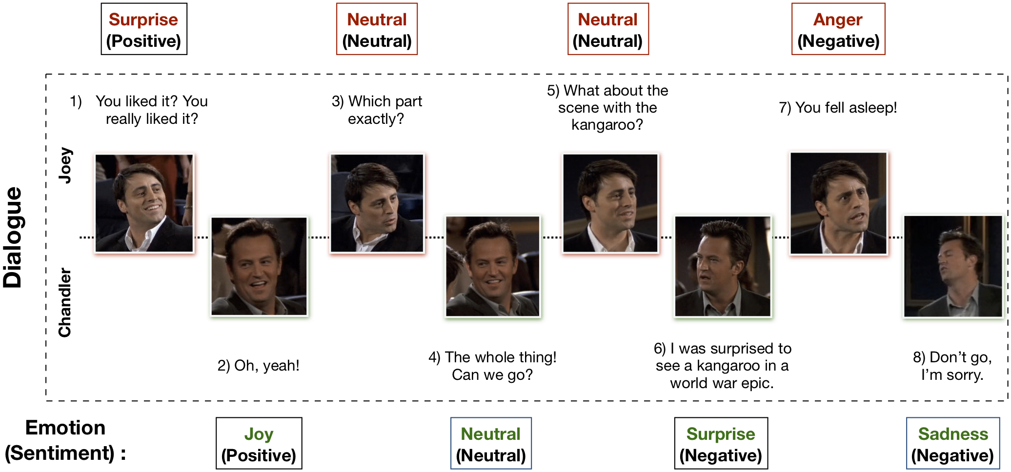 S. Poria、D. Hazarika、N. Majumder、G. Naik、E. Cambria、R. Mihalcea. MELD:用于对话中情感识别的多模态多人数据集。ACL 2019。
