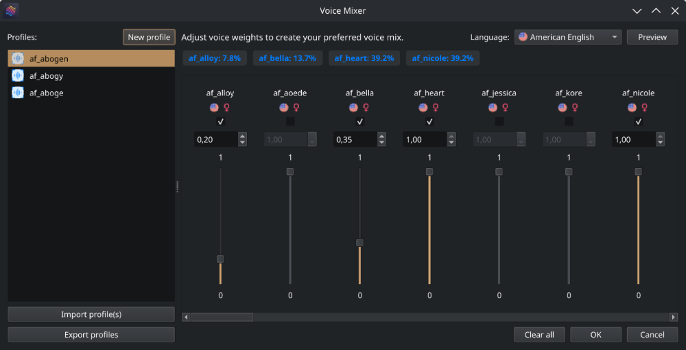 - 添加语音混合功能,允许混合不同的语音模型。(问题 #1,拉取请求 #5)
