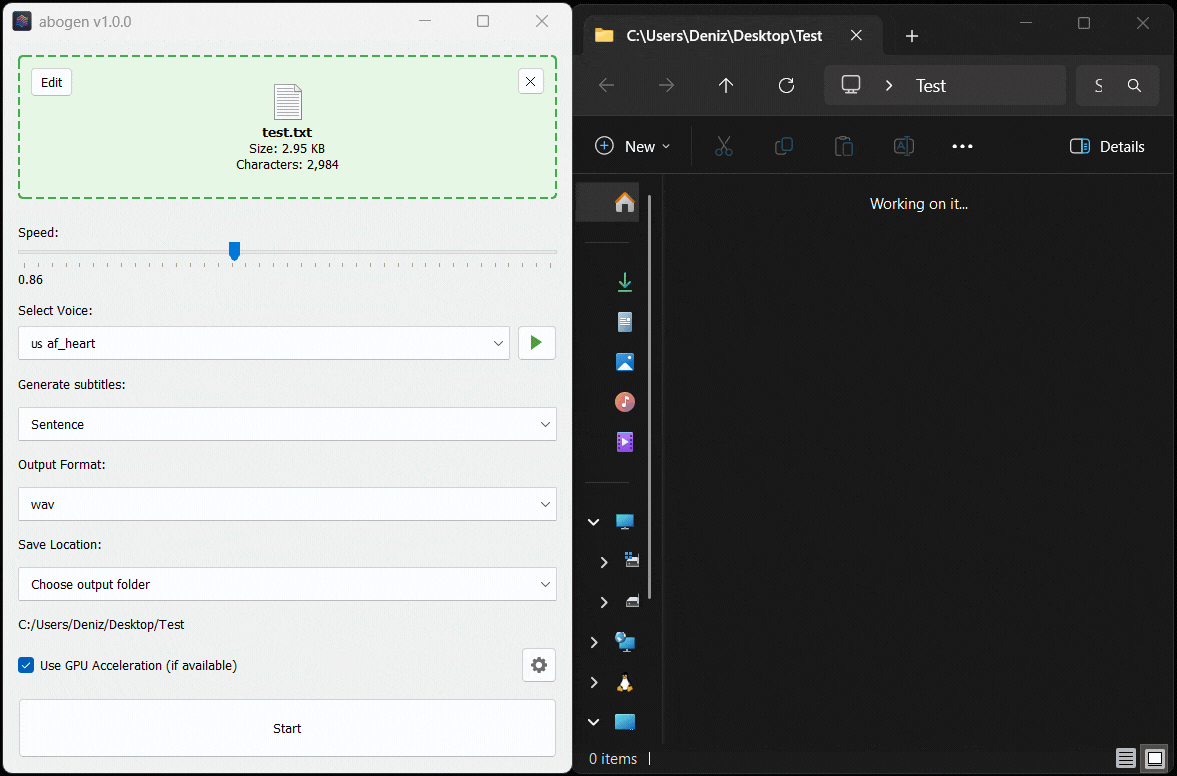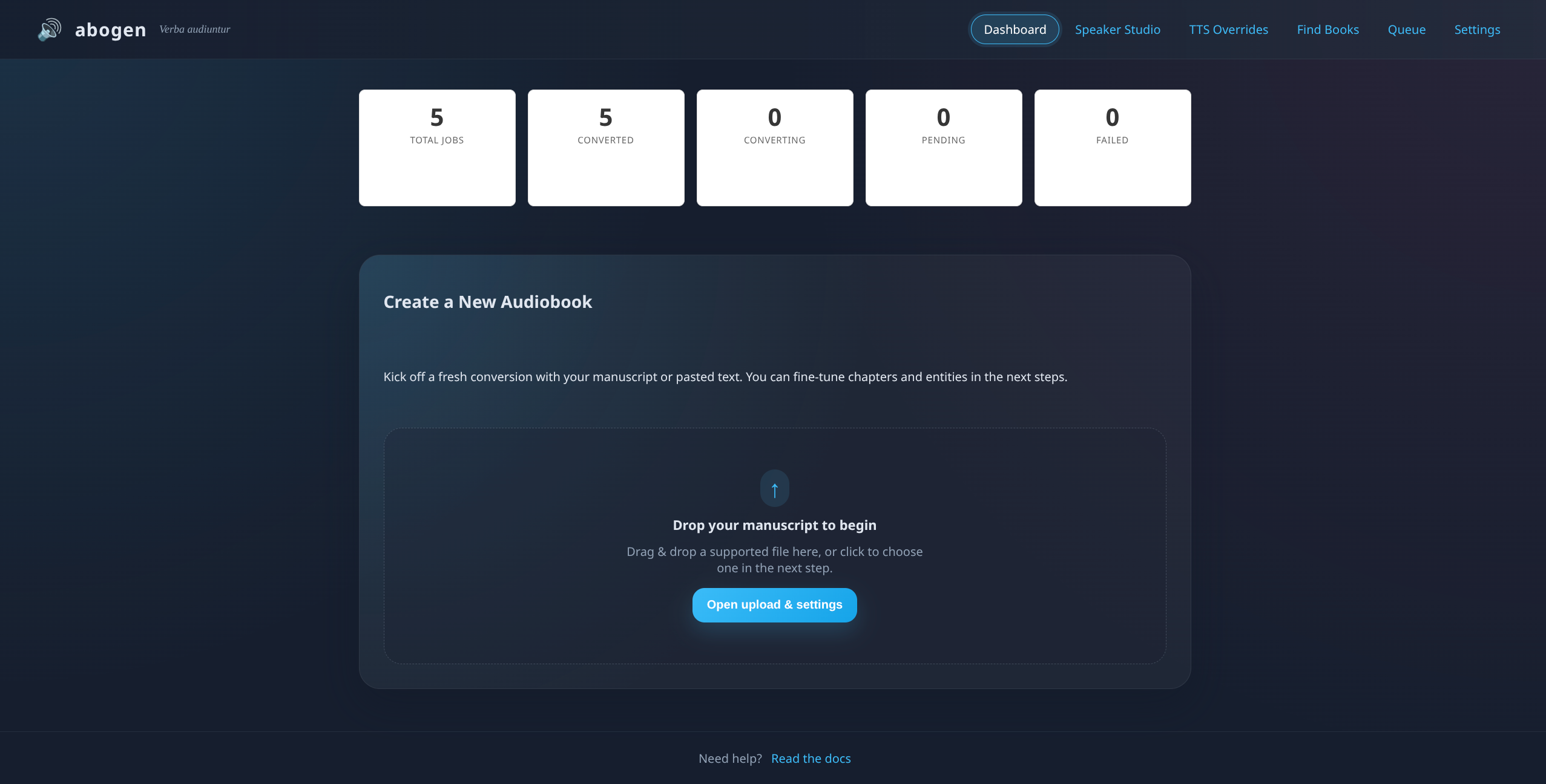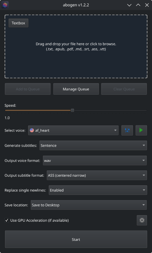 - 一键全自动流转:直接导入 EPUB 或 PDF 文件,abogen 自动完成文本解析、高质量语音生成及字幕同步,全程无需人工干预。