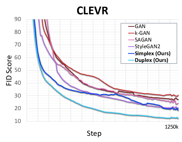 | 模型 | CLEVR | LSUN-Bedroom | FFHQ | Cityscapes |