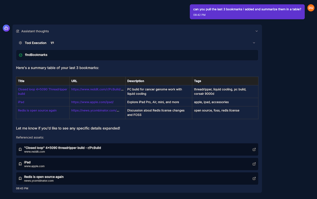 - 外部集成:通过 GitHub 和 Reddit API 获取书签内容