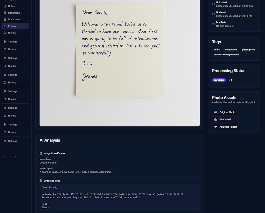 - 将所有笔记、文档、图片、书签和任务导入 eclaire,实现统一存储与索引,数据完全保留在本地。