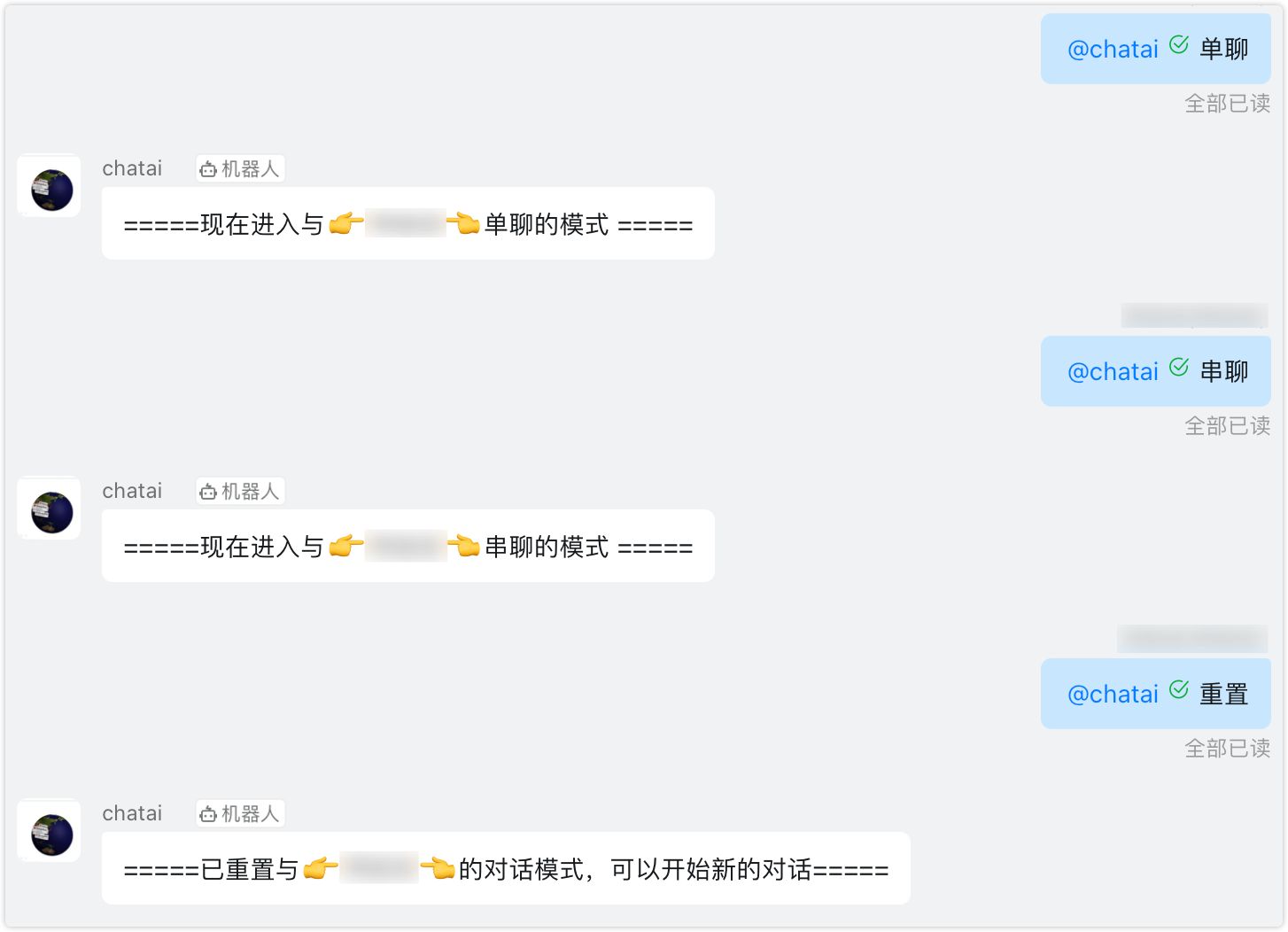 - 🙋 单聊模式:每次对话都是一次新的对话,没有历史聊天上下文联系