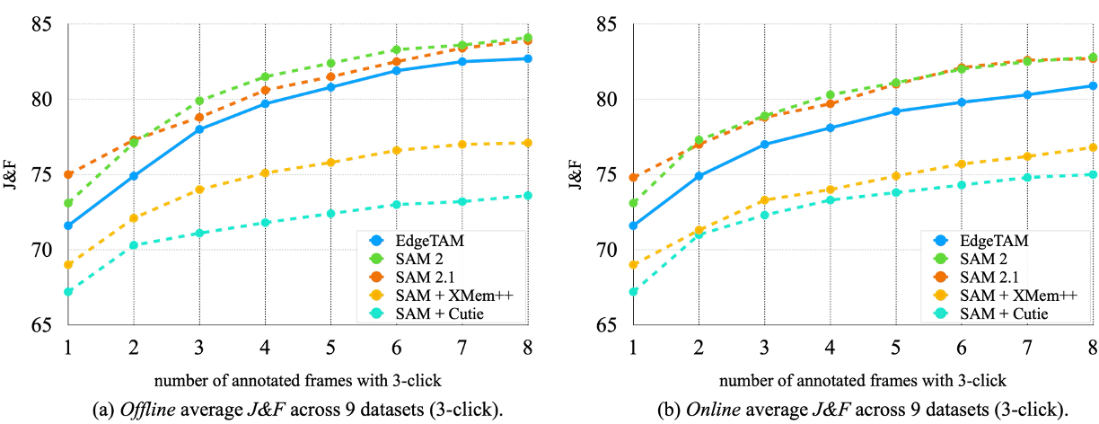 | EdgeTAM | 70.0 | 87.7 | 72.3 | 71.7 | 86.2 | 150.9 | - | 15.7 |
