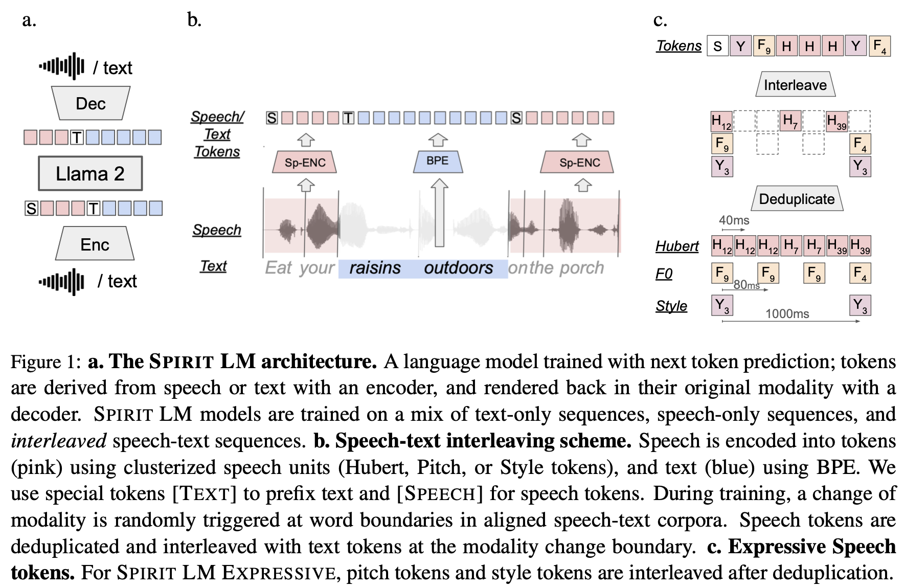 本仓库包含 Spirit LM 模型的权重、推理代码以及评估脚本 论文。您可以在我们的 演示页面 上找到更多生成示例。