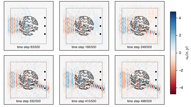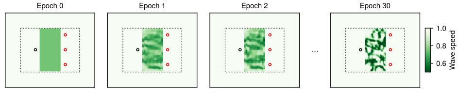 WaveRNN等模块即可在时间域精确模拟声波在非均匀介质中的传播,代码简洁可靠。 - 利用 PyTorch 自动微分机制,材料参数的梯度可自动计算,轻松实现端到端的逆向设计与优化。