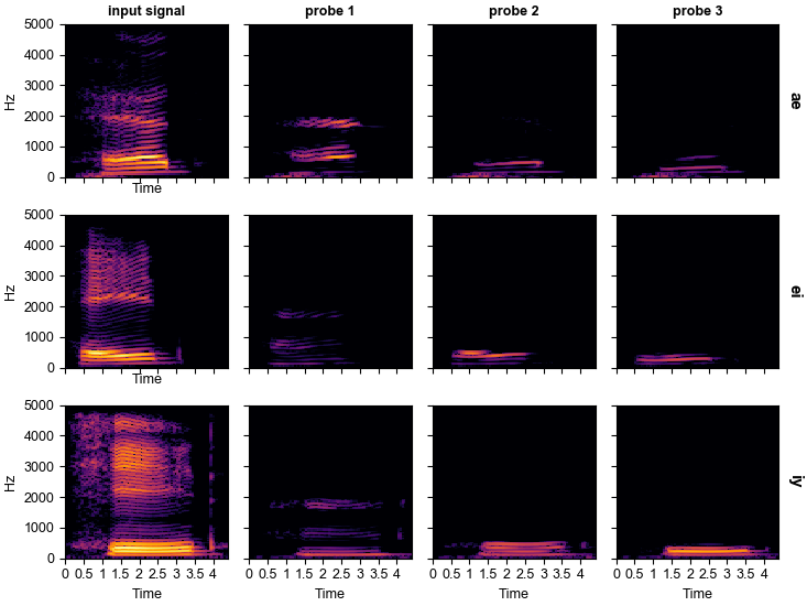 可通过以下命令生成接收信号的短时傅里叶变换(Short-Time Fourier Transform, STFT)矩阵,其中行对应输入元音,列对应特定探针(与混淆矩阵的分布一致):