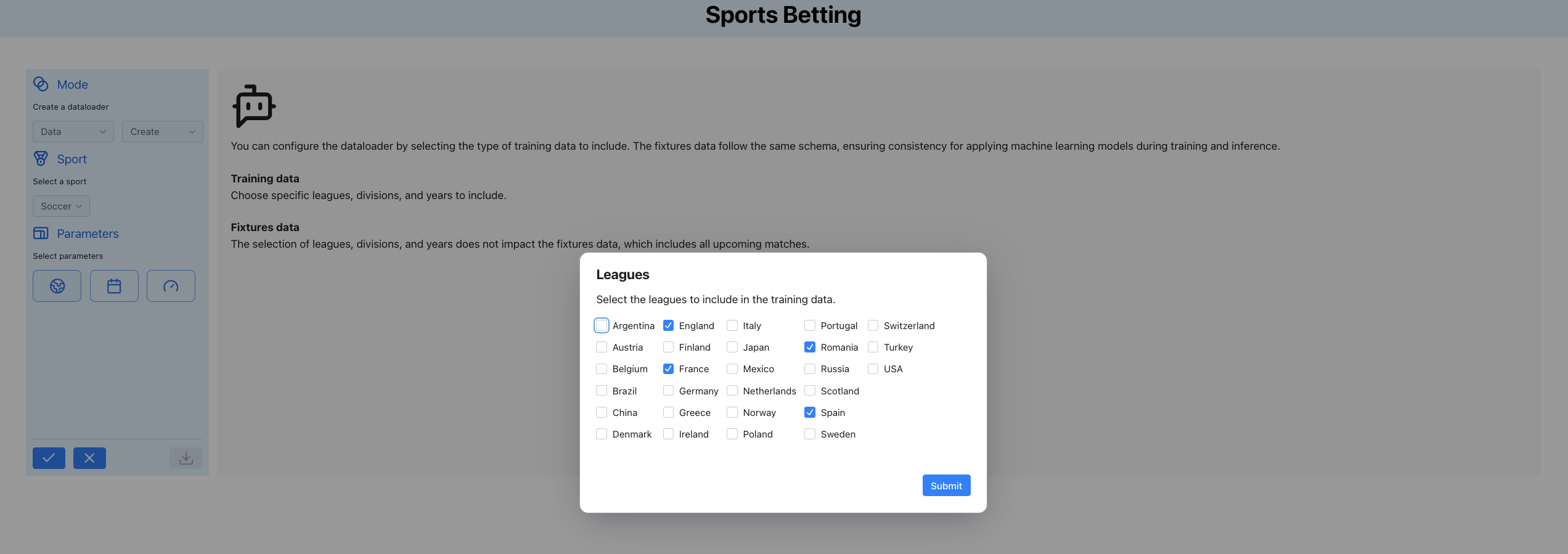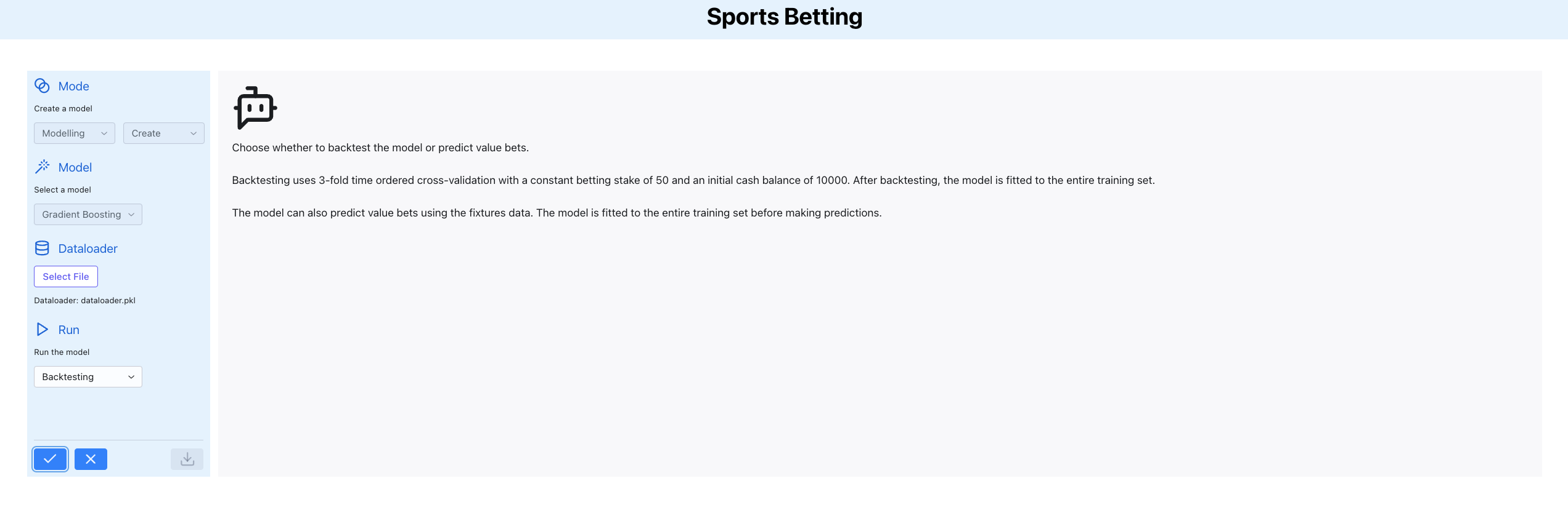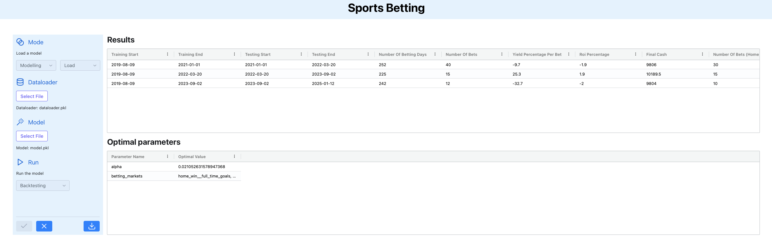 sports-betting 包 是一套用于创建、测试和使用体育博彩模型的实用工具。它配备了 Python API、CLI,甚至还内置了一个基于 Reflex 构建的 GUI,让操作更加简单: