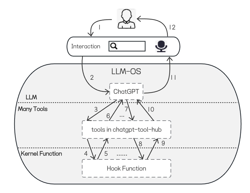 如果把ChatGPT的插件比作Apple的App Store,那么这个项目最终形态就是Android OS的开放式生态,简称LLM-OS。在这个生态里所有工具组成一个操作系统,用户仅需输入或传述文字即可做任何事情。