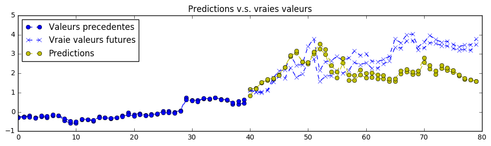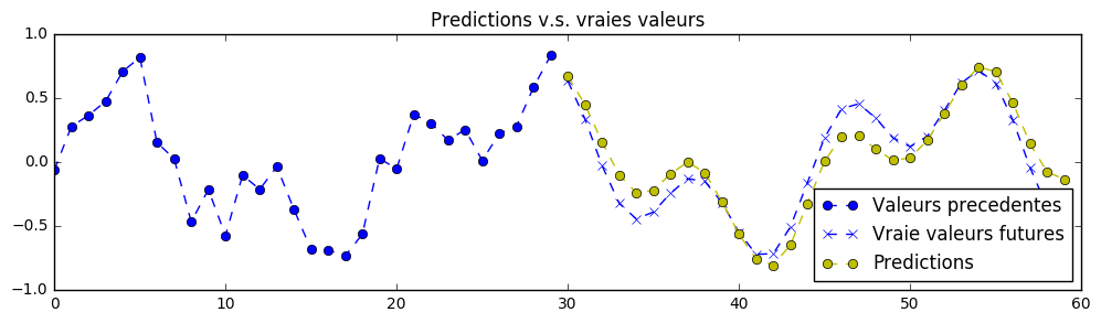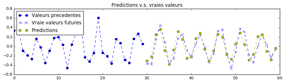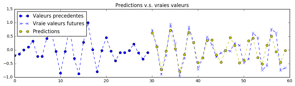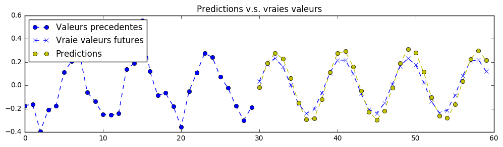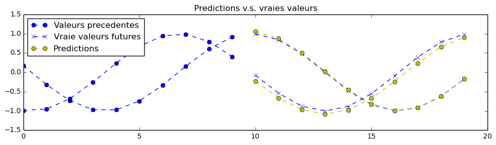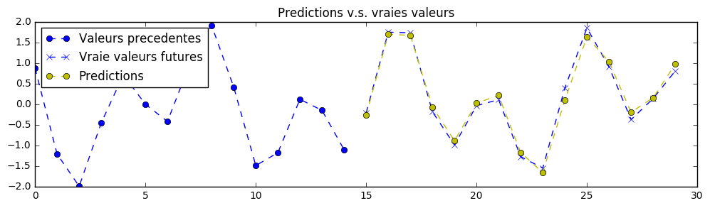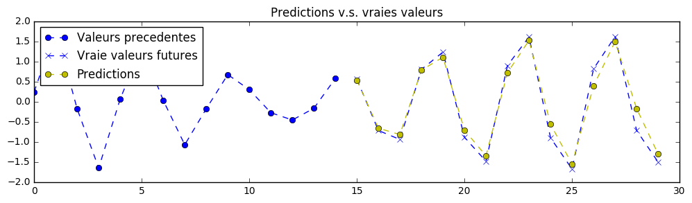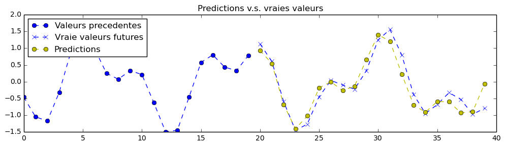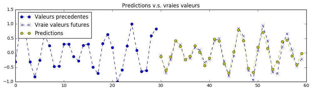 理论上,由于该练习中的信号是确定性的,因此可以实现完美的预测。神经网络的参数已设置为第一次训练时“勉强”可接受的值。您需要不断调整超参数,直到获得类似以下的预测结果: