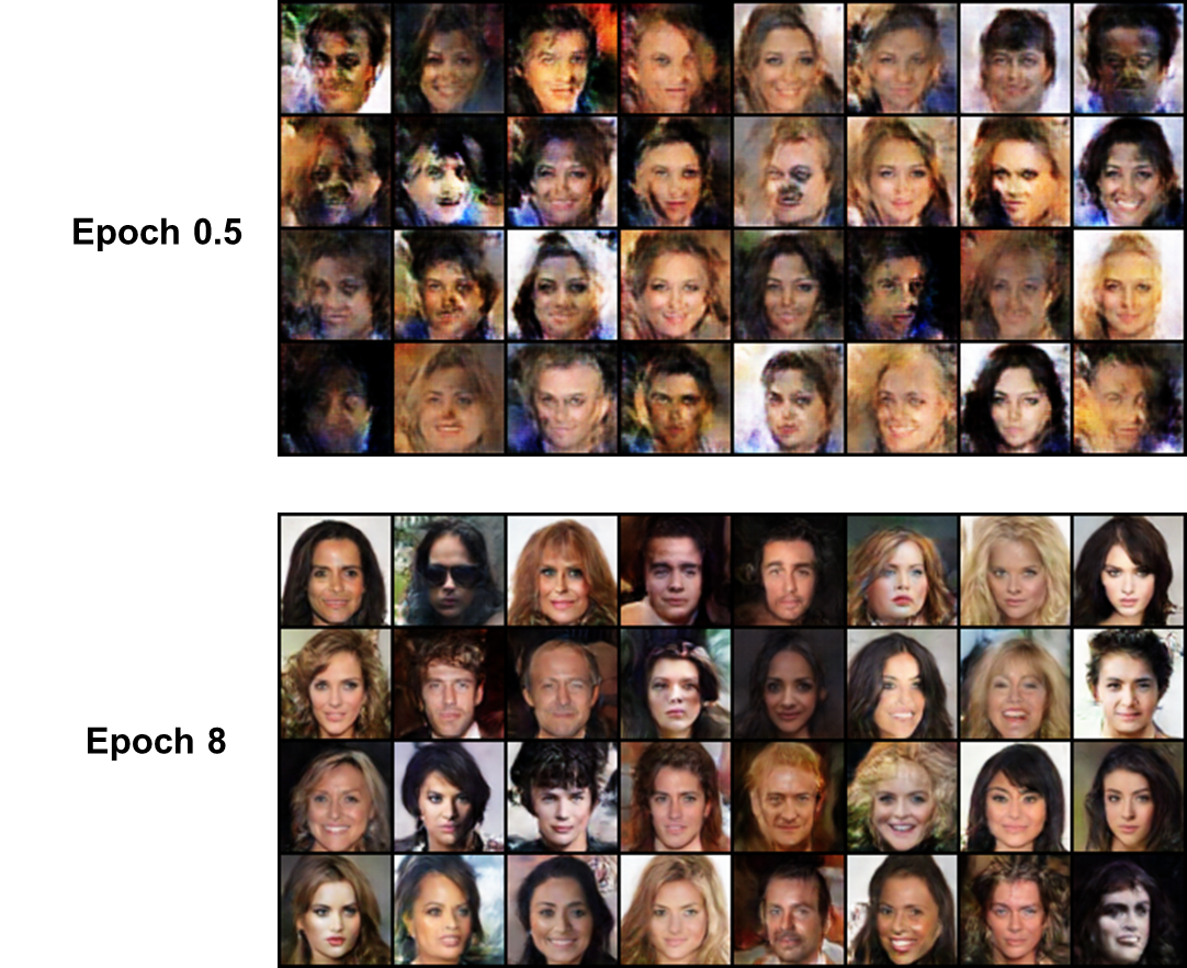 CelebA 数据集(左侧为当前轮次,仍在训练中)