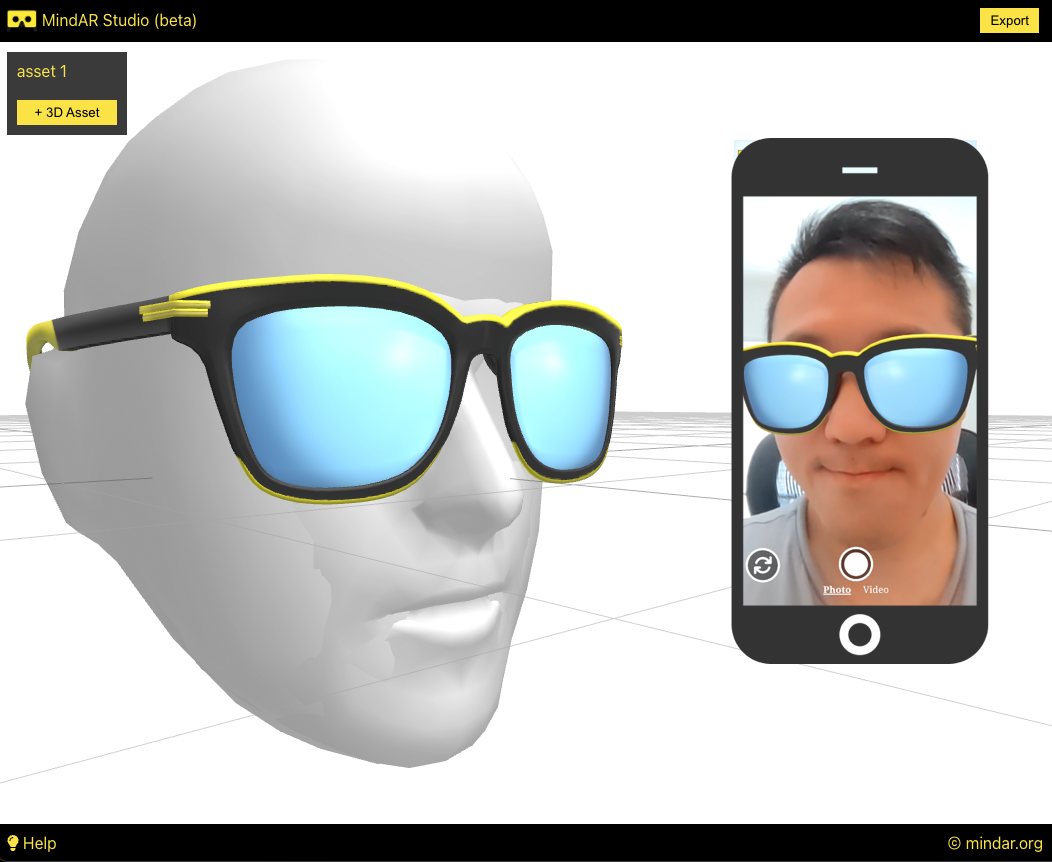 MindAR StudioMindAR Studio 允许您无需编码即可构建人脸跟踪 AR。您可以通过拖放式编辑器制作 AR 效果,并导出静态网页自行托管。完全免费! 如果您感兴趣,不妨试试!https://studio.mindar.org |