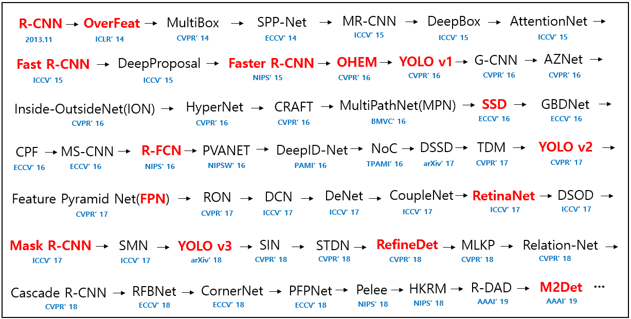 这是一份使用深度学习进行目标检测的论文列表。我参考了这篇综述论文,并经过反复搜索整理而成。