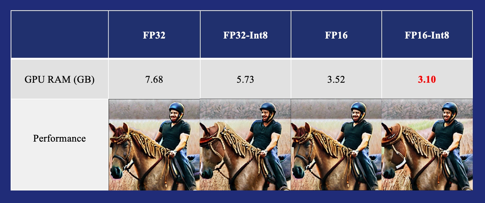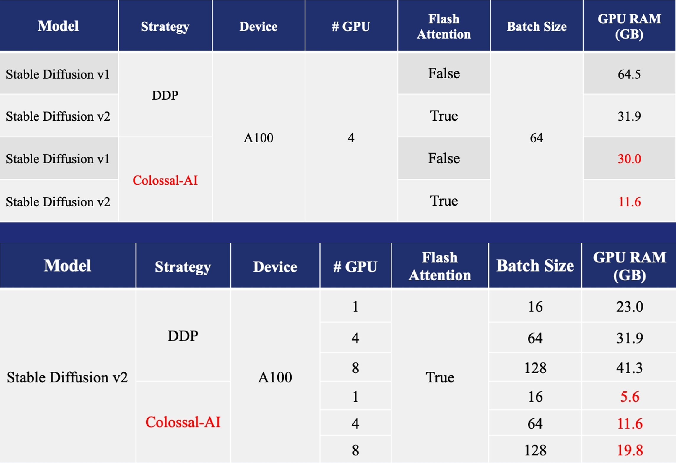 - 训练: 将Stable Diffusion的显存消耗降低至多5.6倍,硬件成本降低至多46倍(从A100降至RTX3060)。