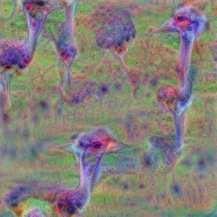 - 基于 Google 的 Deep Dream 技术的 CNN 可视化。相关博客文章请参阅:https://research.googleblog.com/2015/06/inceptionism-going-deeper-into-neural.html。其核心思想是构造一张能够最大化特定输出激活值的输入图像。以下是一些示例: